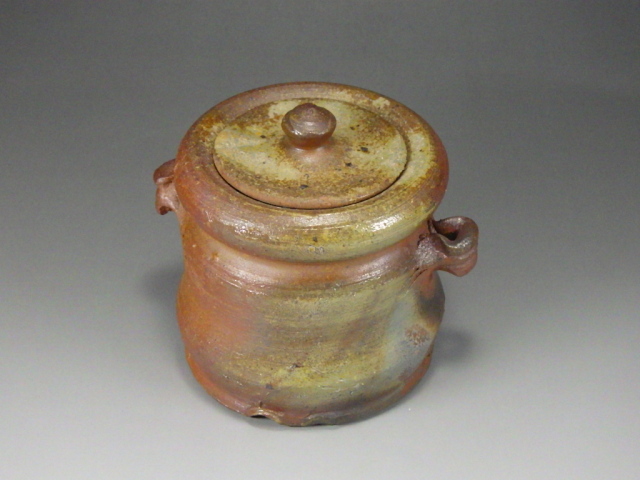 竹内靖之(備前焼桟切黄ゴマ蓋付小壺)