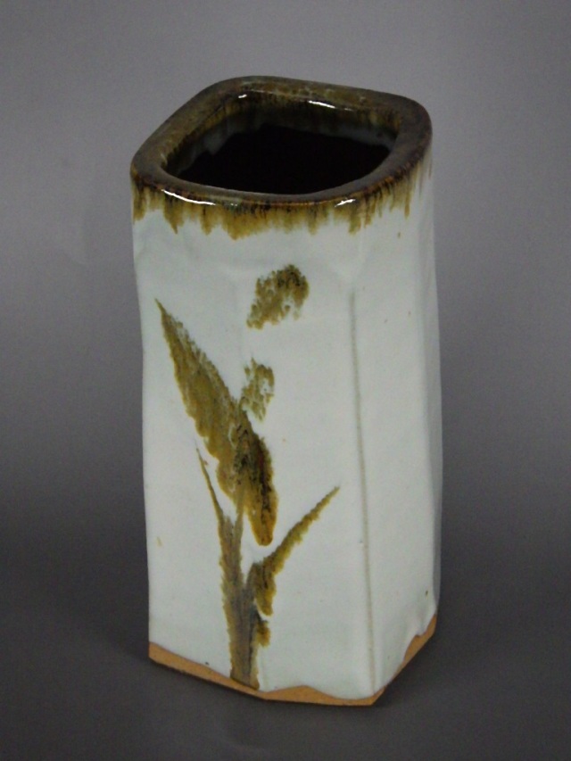 川尻浩史(益子焼大振糠釉鉄絵四方花入)