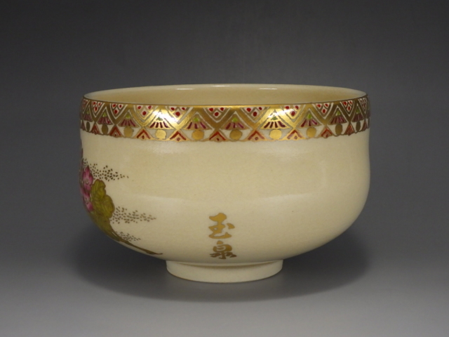玉泉作(薩摩金彩花絵抹茶茶碗)